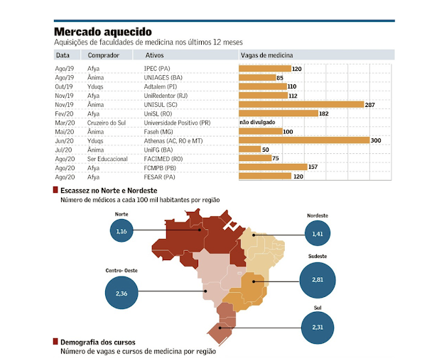 Esse foi o preço médio por vaga pago em 13 aquisições de faculdades médicas no Brasil nos últimos 12 meses até agosto… Leia mais em valoreconomico 04/09/2020