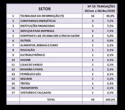 Fusões e Aquisições - destaques da semana 30/nov a 06/dez/2020